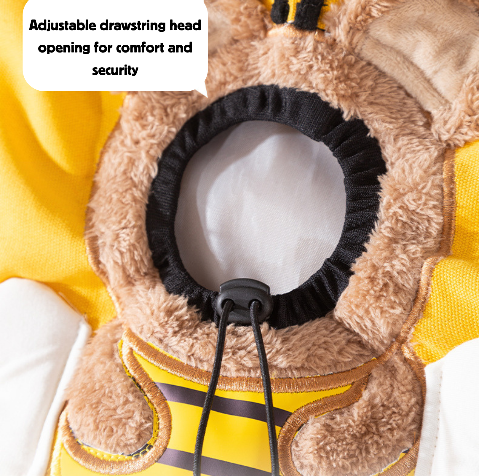 - Adjustable drawstring opening: Allows a secure, customised fit around your pet’s neck area.
