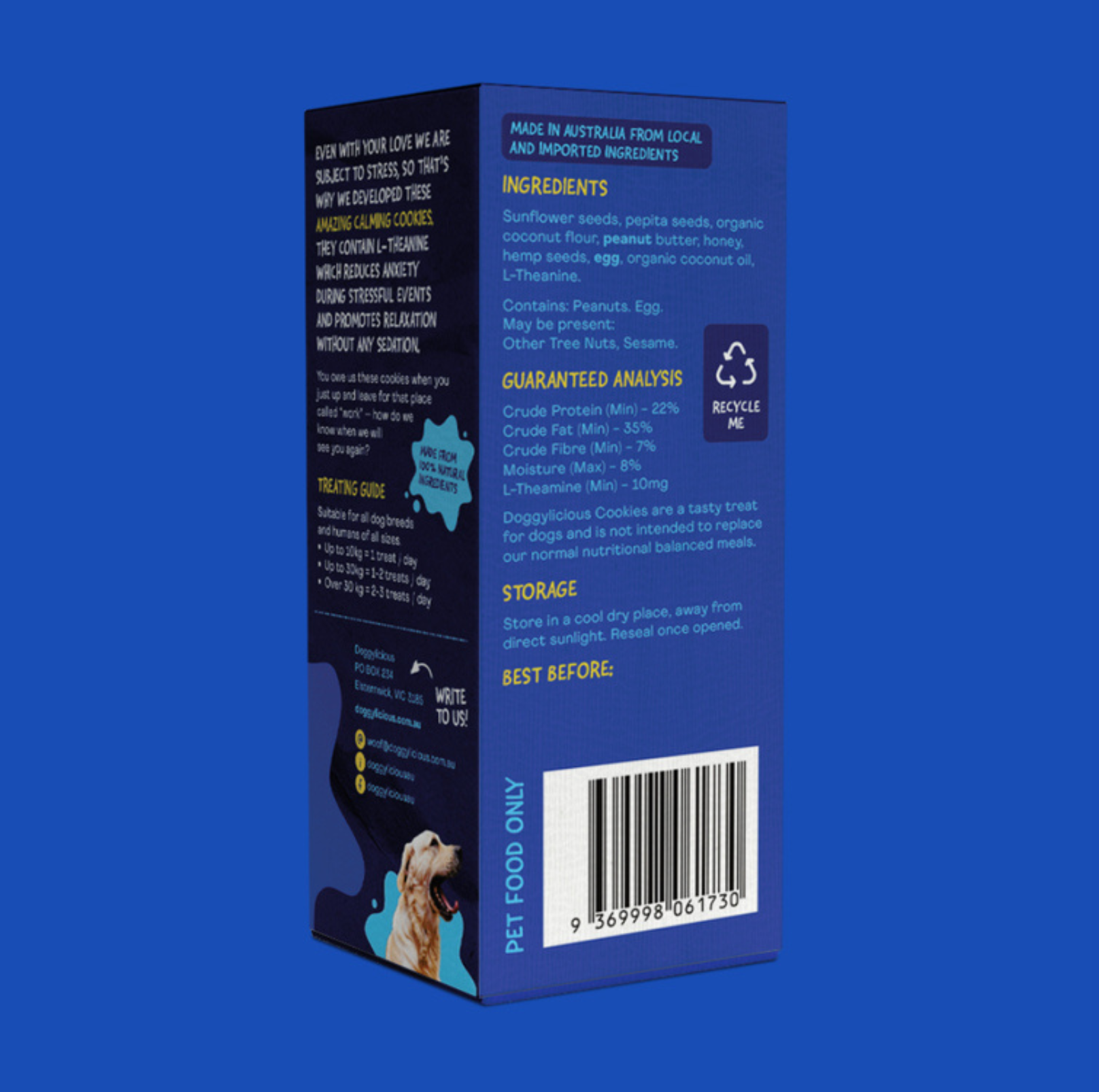 You humans love to put us dogs through stress, so that’s why we developed these amazing calming cookies. They contain L-Theanine which reduces anxiety during stressful events and promotes relaxation without sedation.