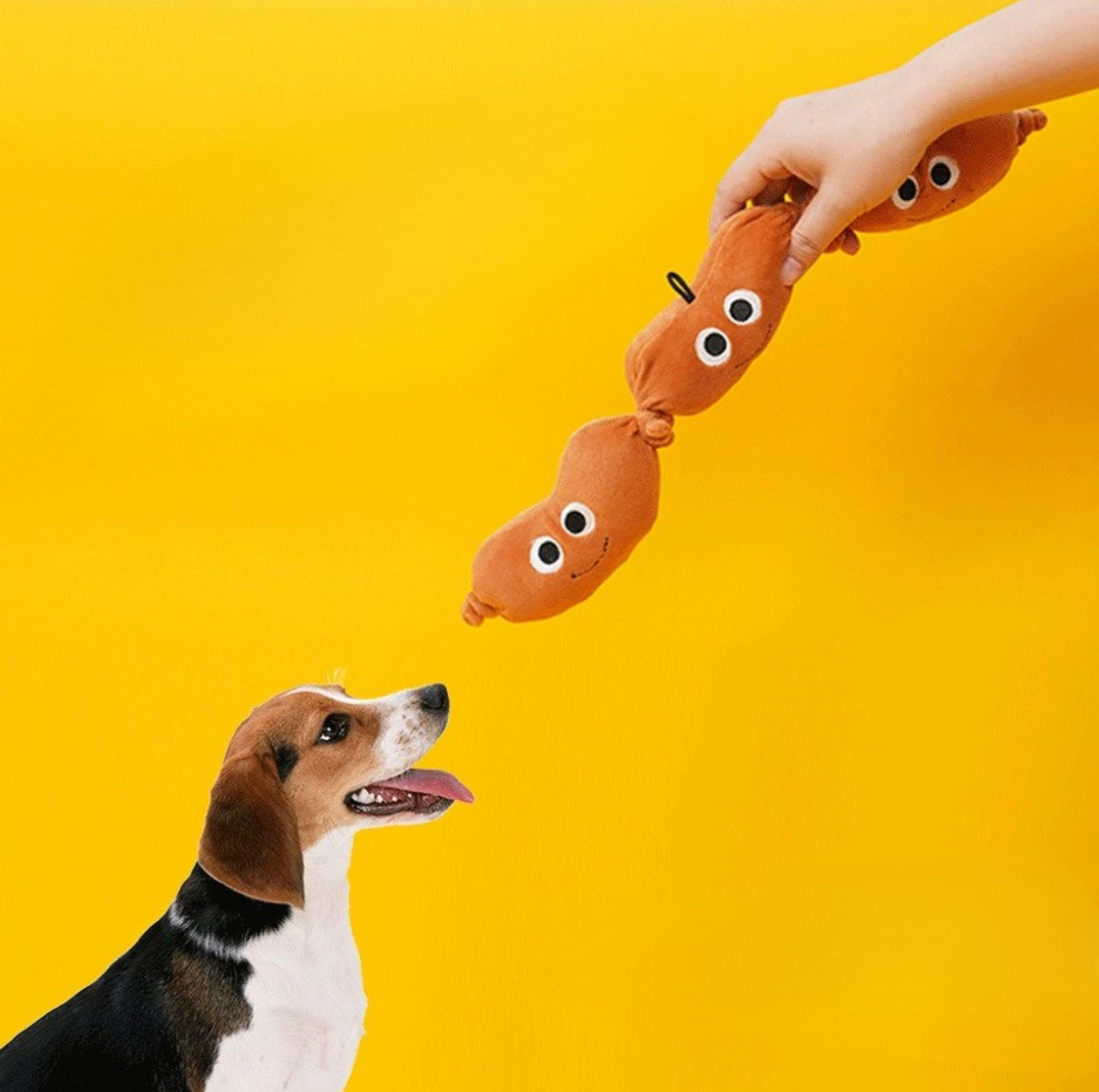 Fast Food Plush Squeaky Dog Toys - Sausage