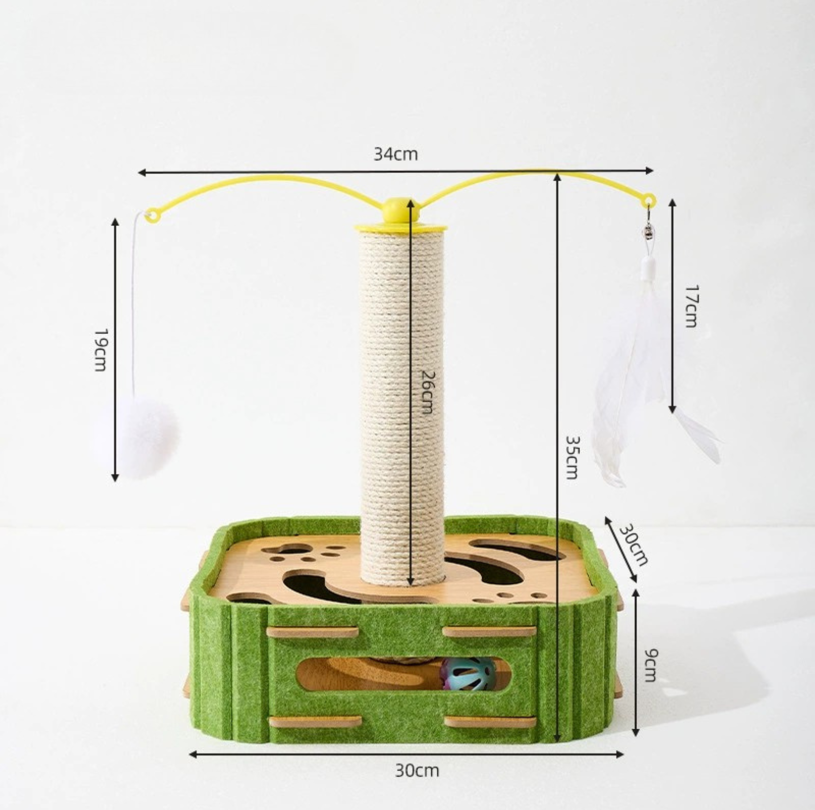 - Multi-Functional Design: Combines a play box, scratching pole, and rolling ball track — an all-in-one playground that keeps cats entertained and active.