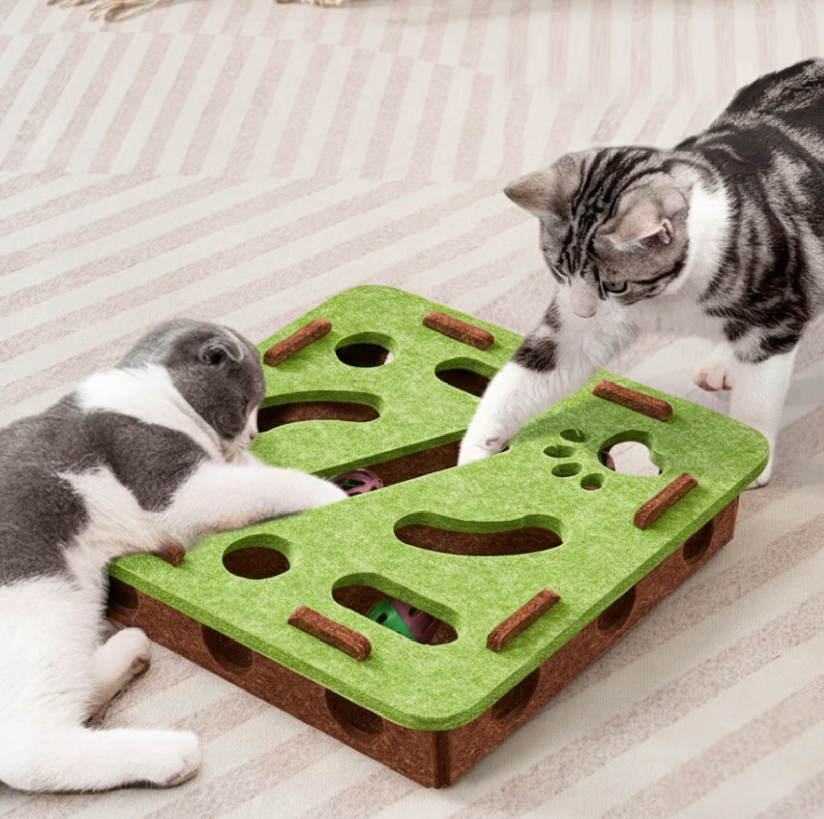 - Maze-Style Interactive Design: Top panel features multiple openings that encourage pawing, chasing, and problem-solving play.