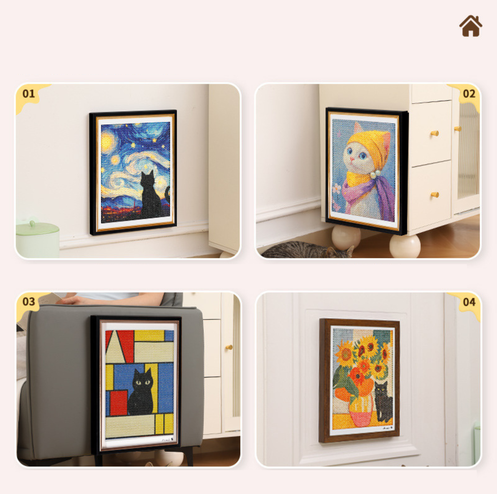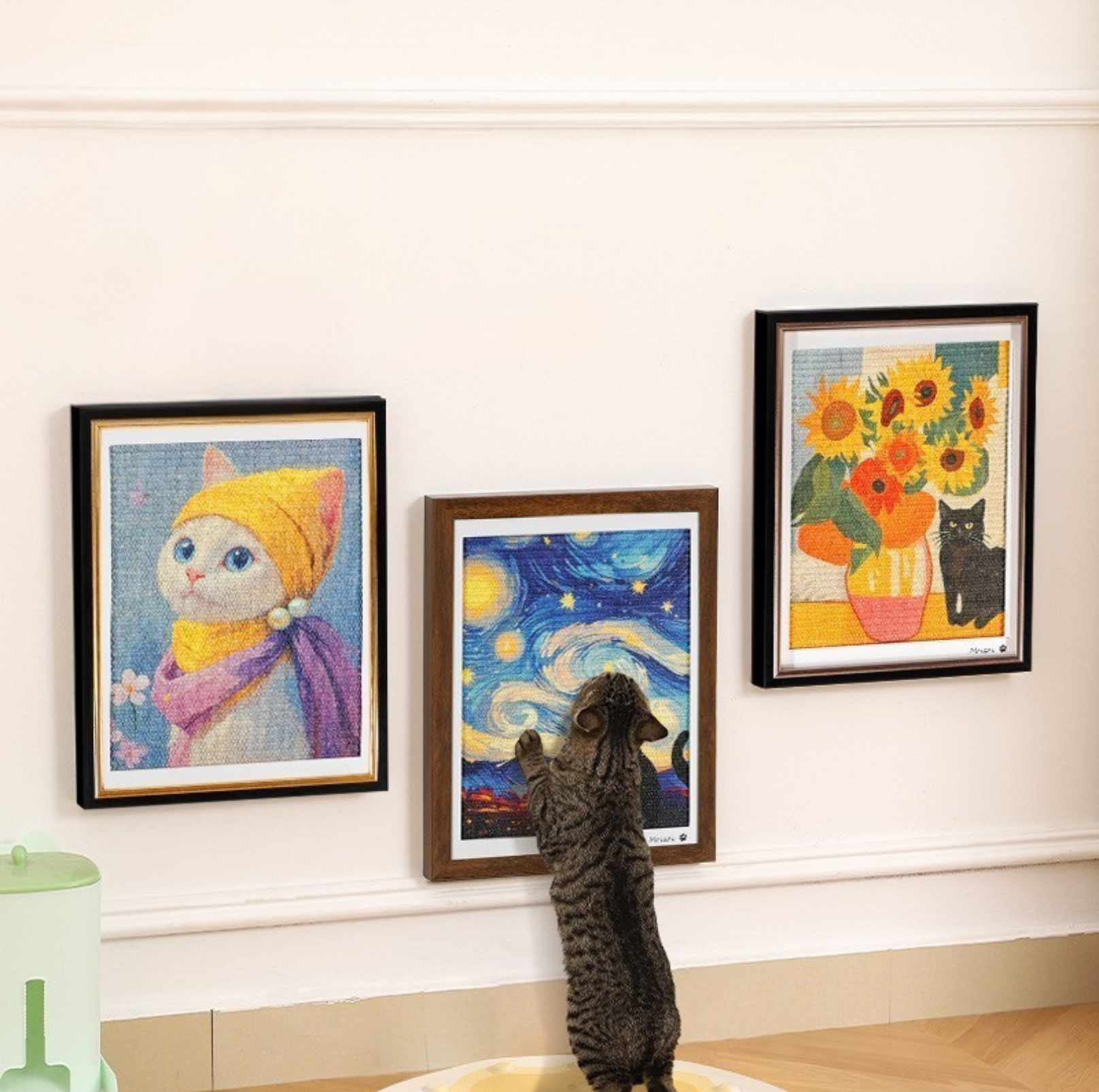 Framed Sisal Cat Scratching Board – Wall-Mounted Decorative Vertical Cat Scratcher