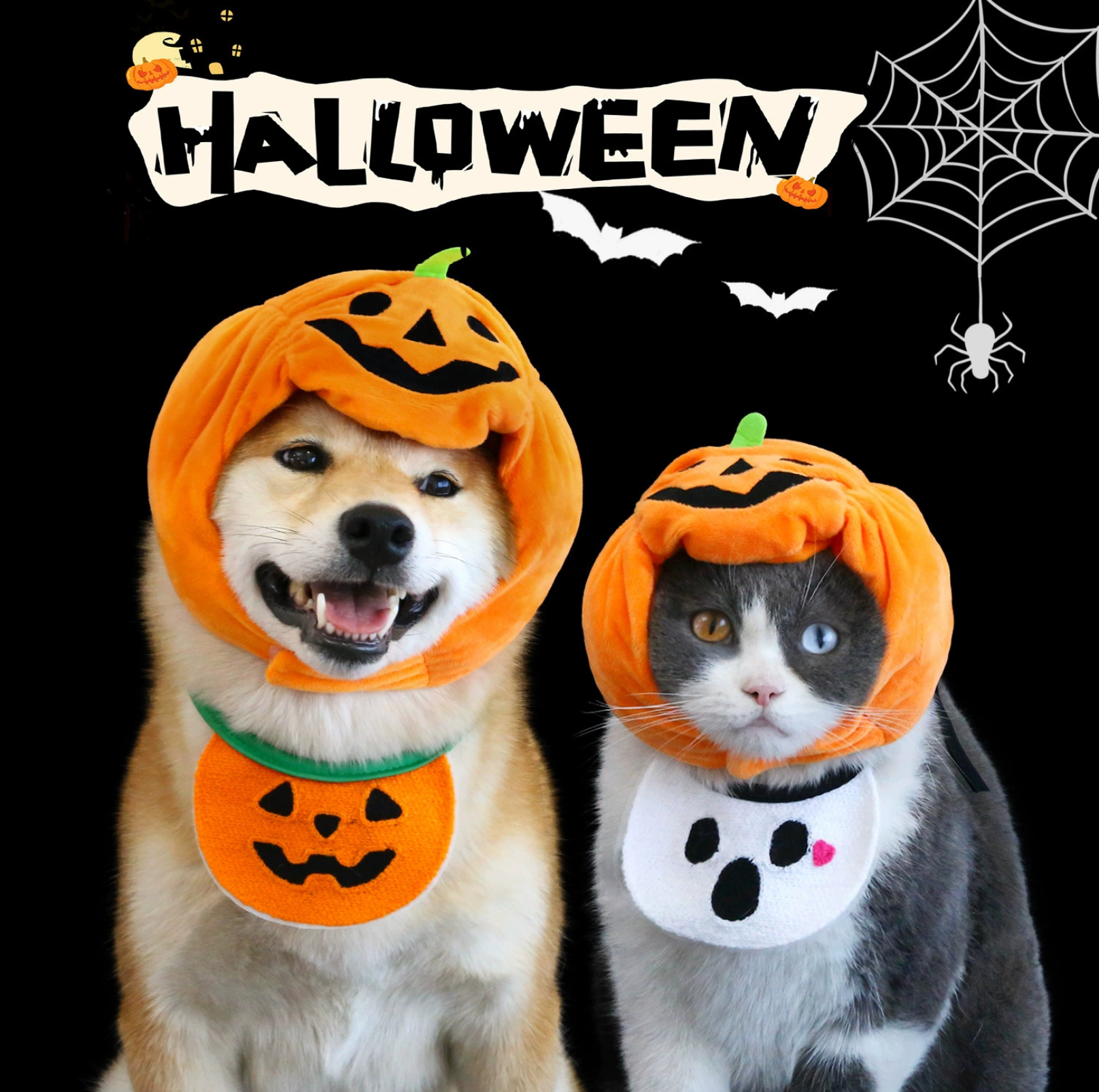 Halloween Pumpkin Hat & Ghost Bib Set for Cats and Dogs