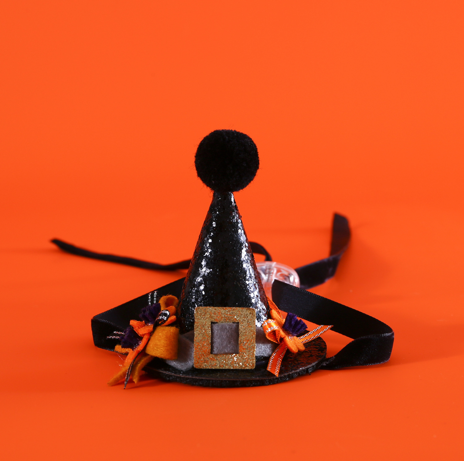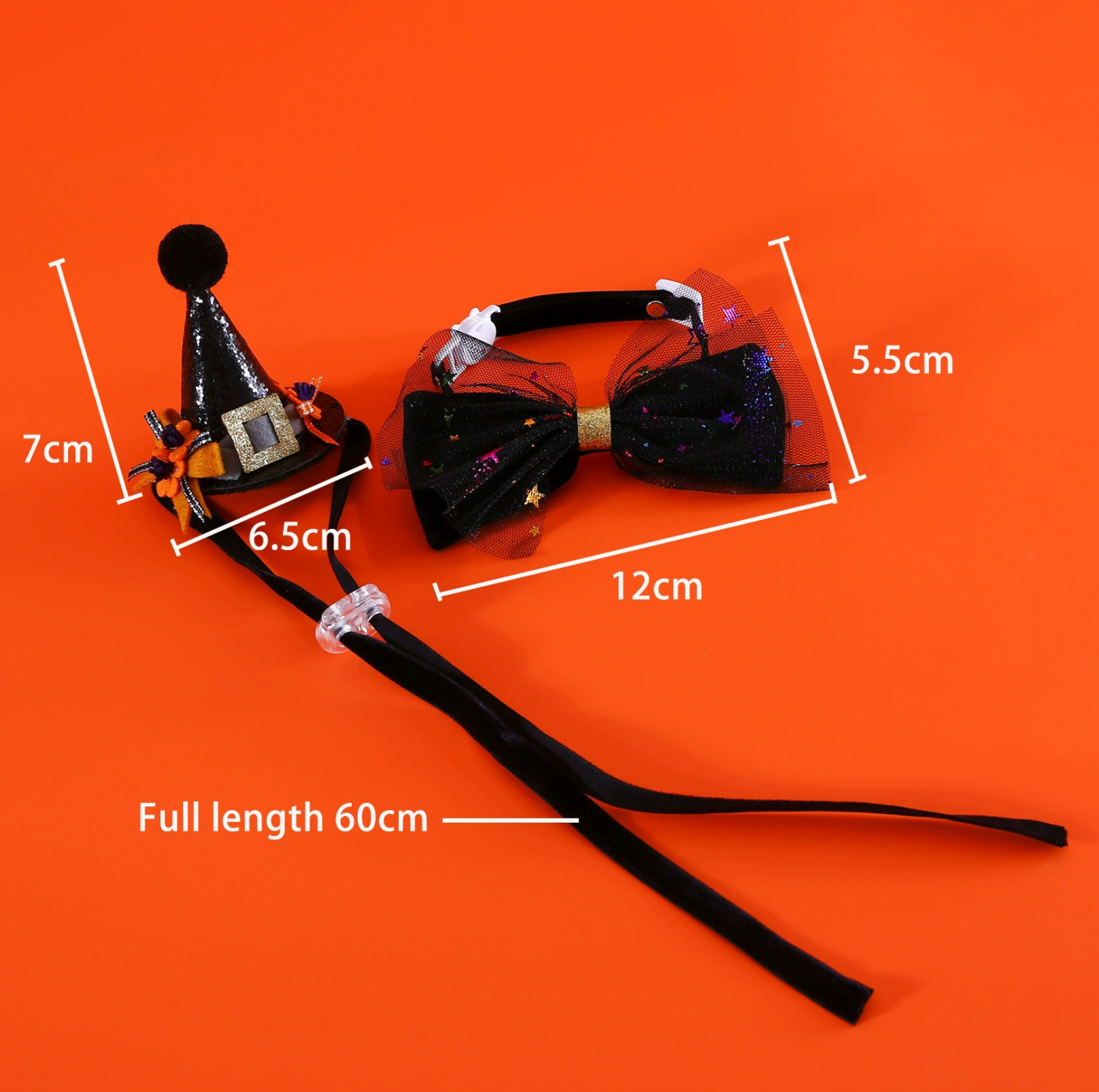 Halloween Witch Hat & Velvet Bow Tie Set for Cats and Small Dogs