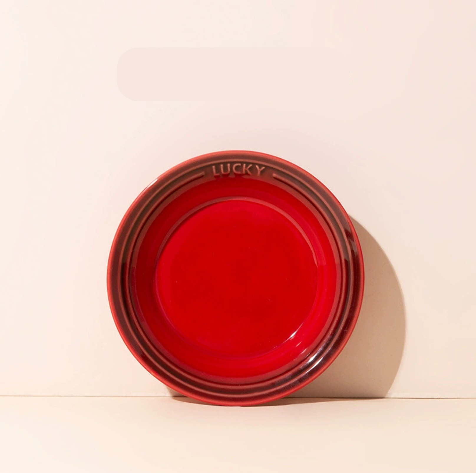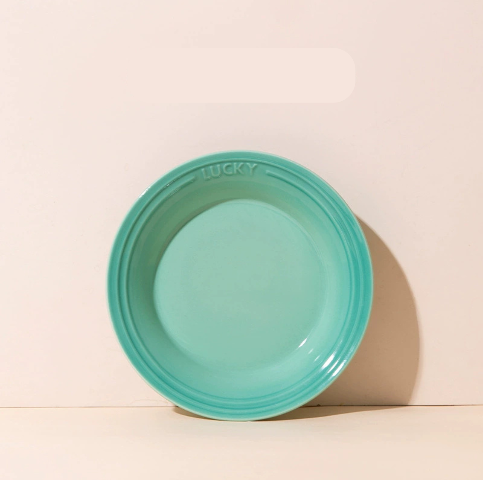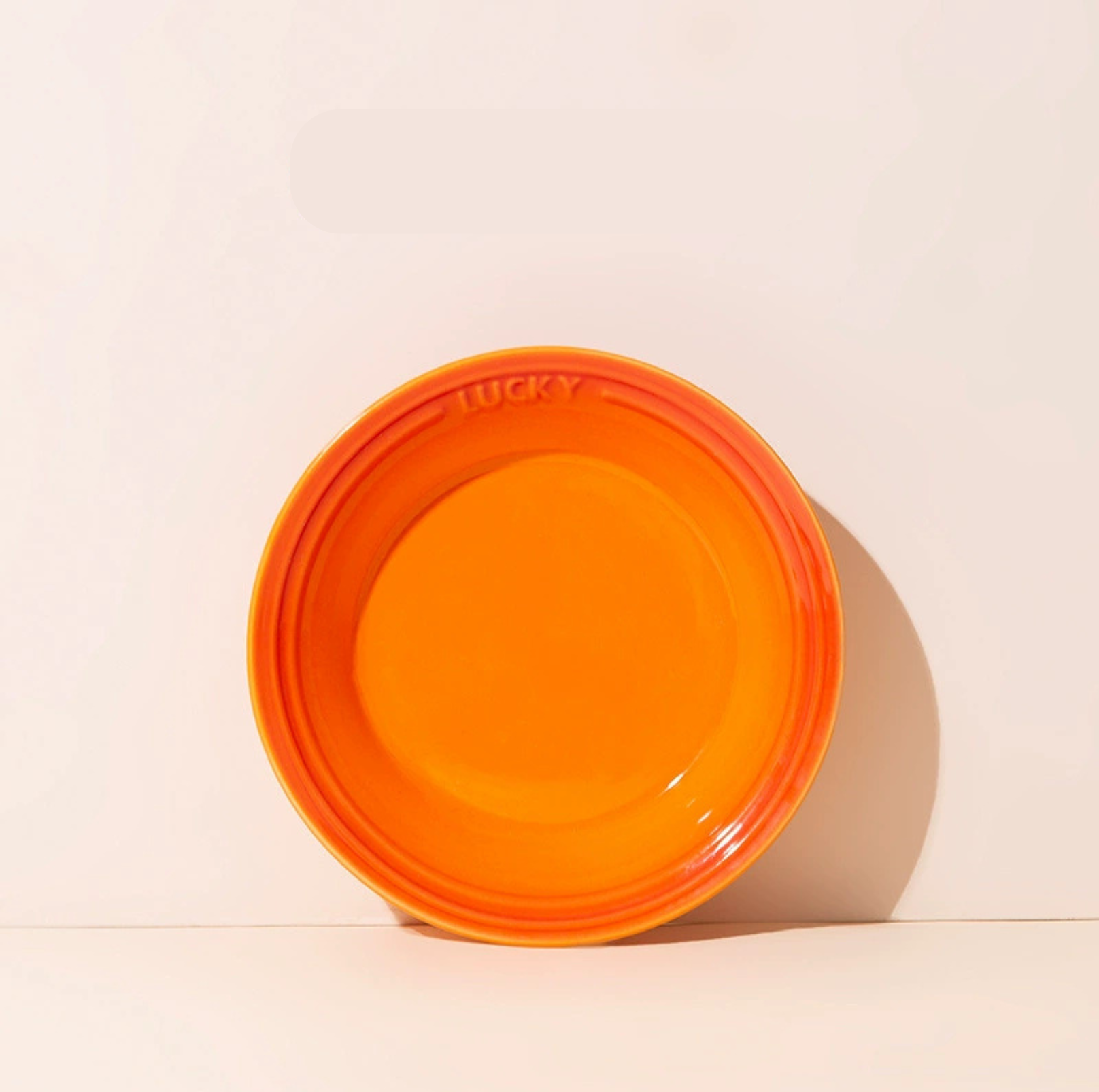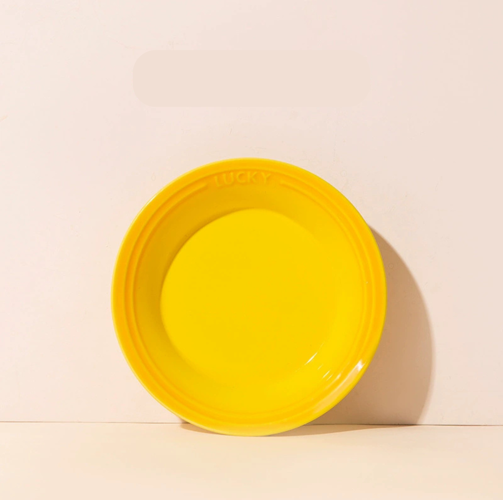 Lucky 6-Inch Flat Ceramic Pet Bowl – Multicolour Glazed Plate for Cats & Small Dogs
