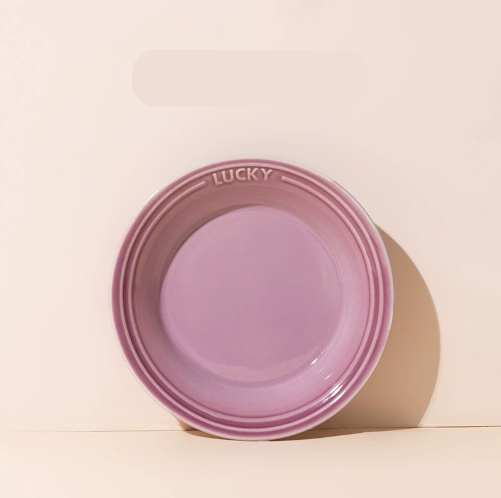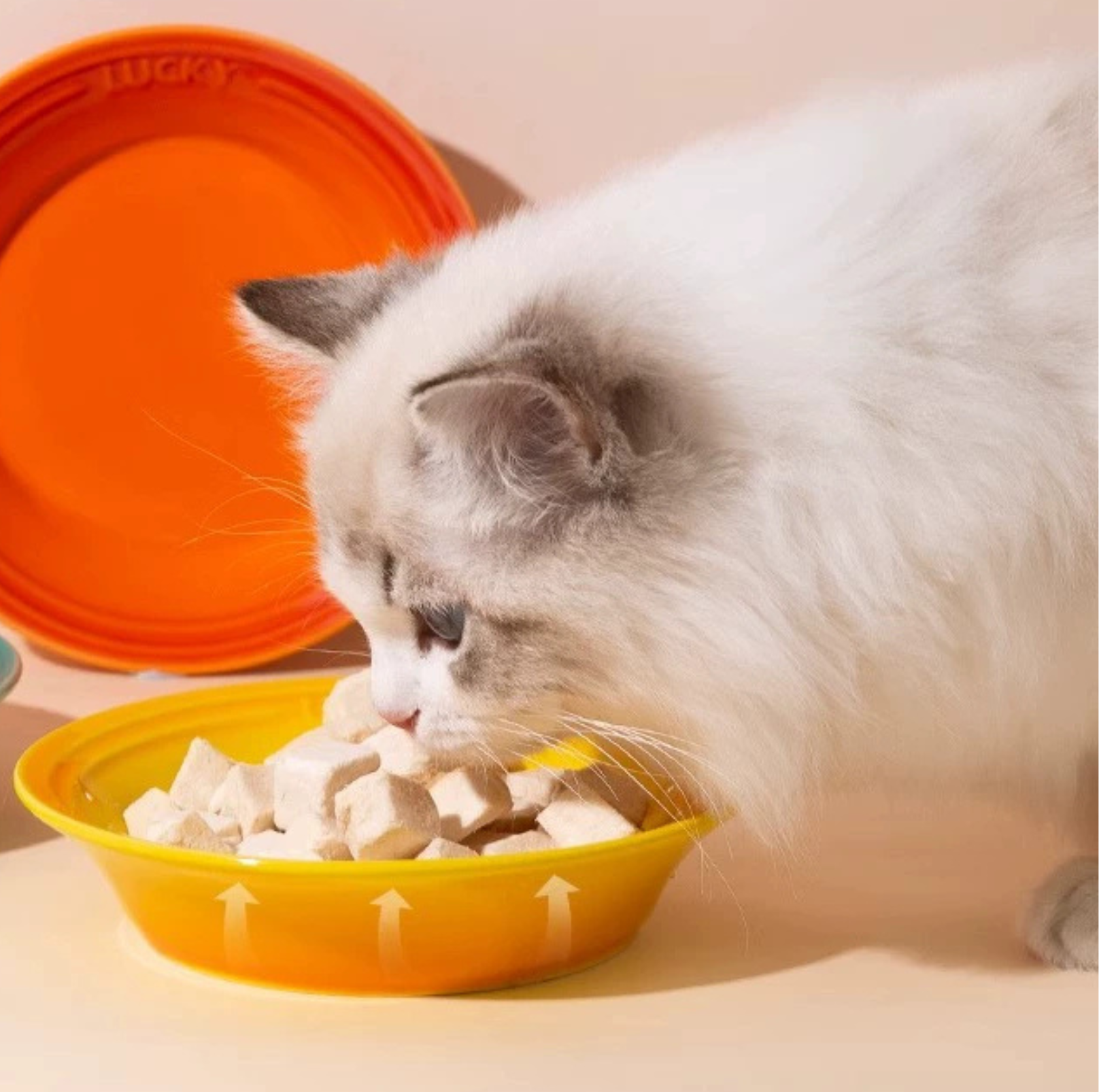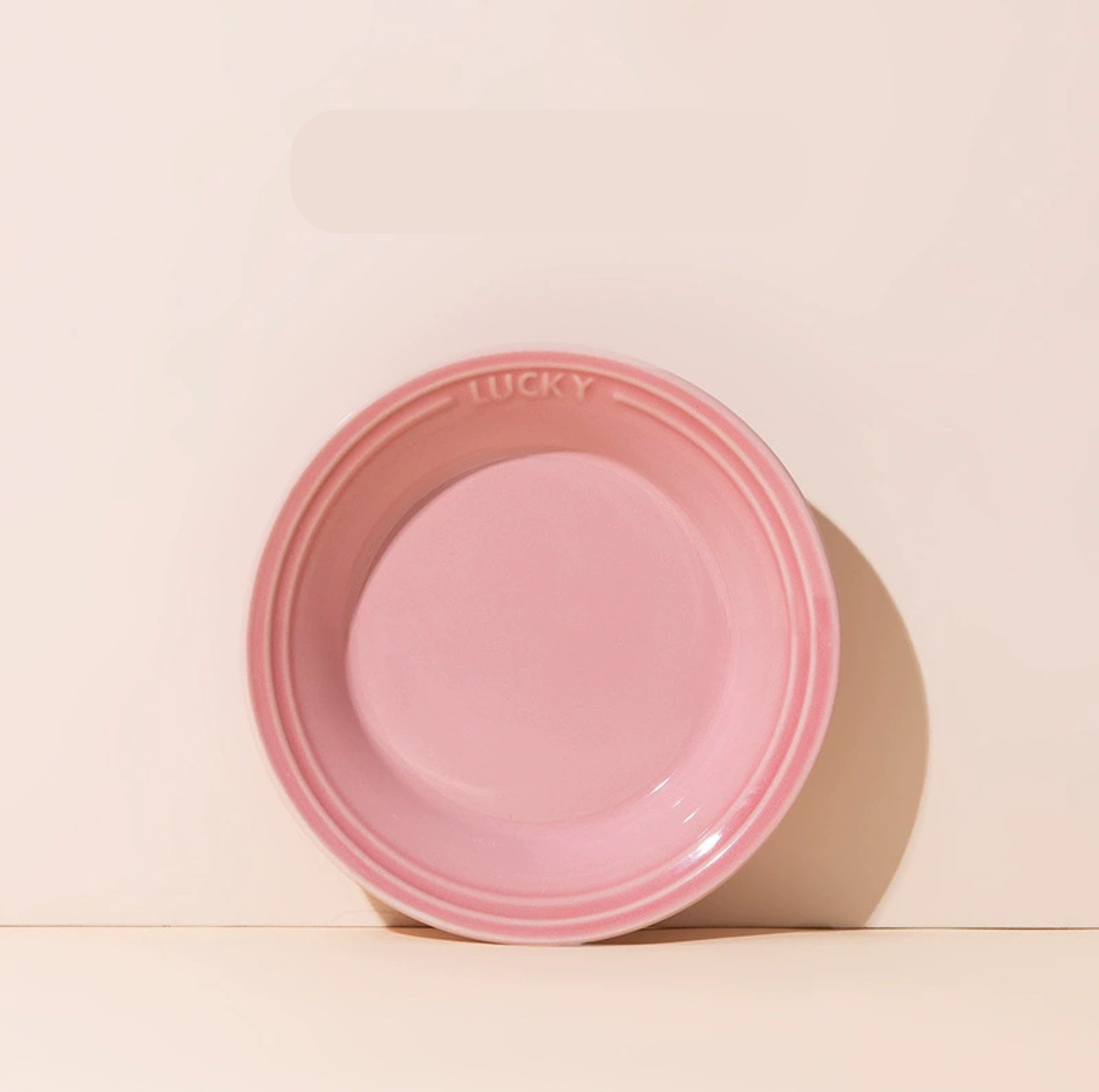 Lucky 6-Inch Flat Ceramic Pet Bowl – Multicolour Glazed Plate for Cats & Small Dogs
