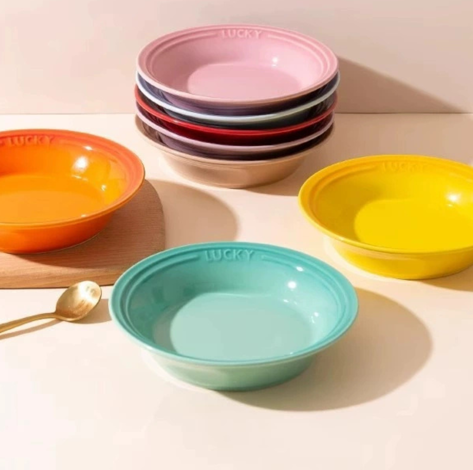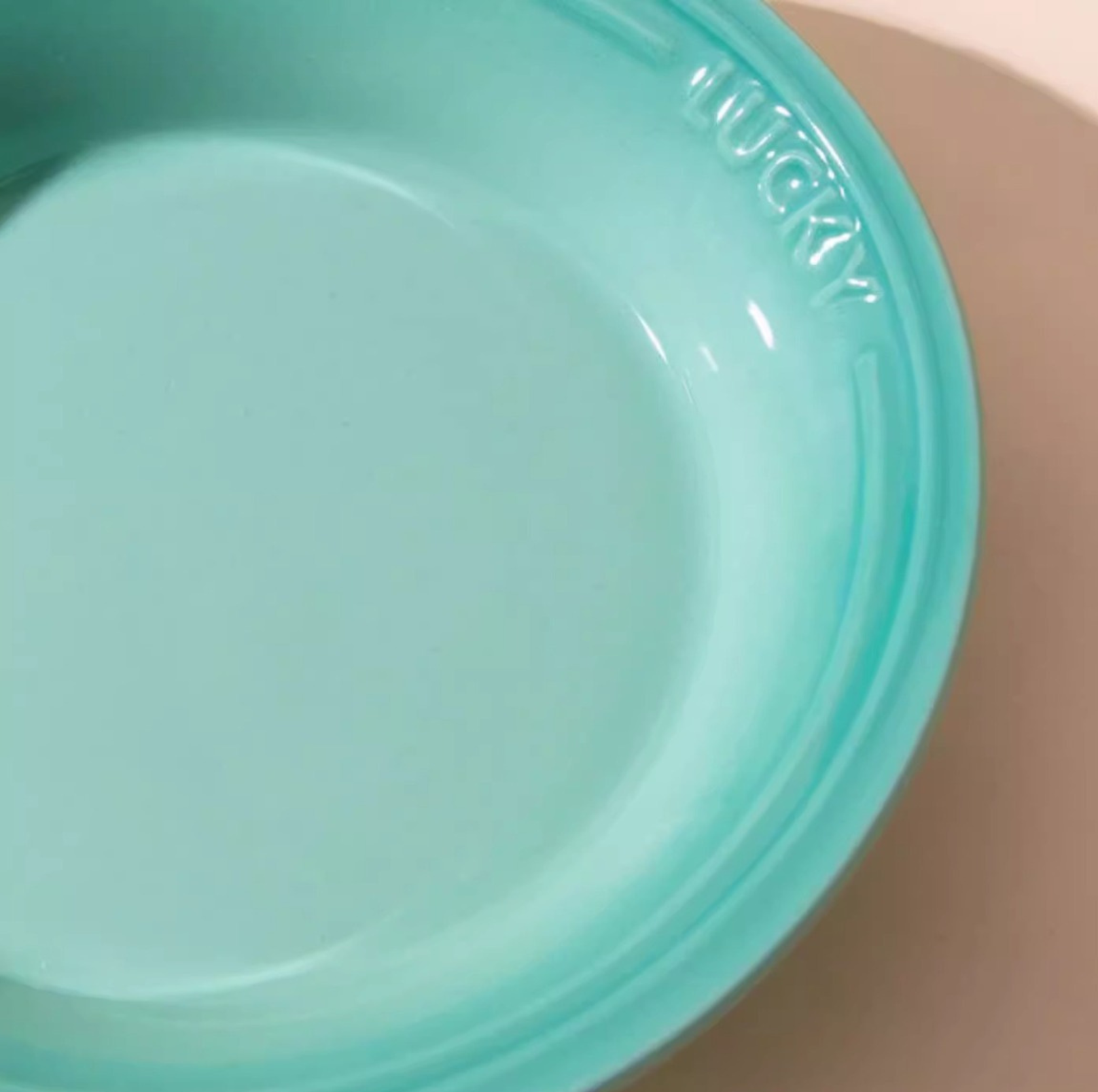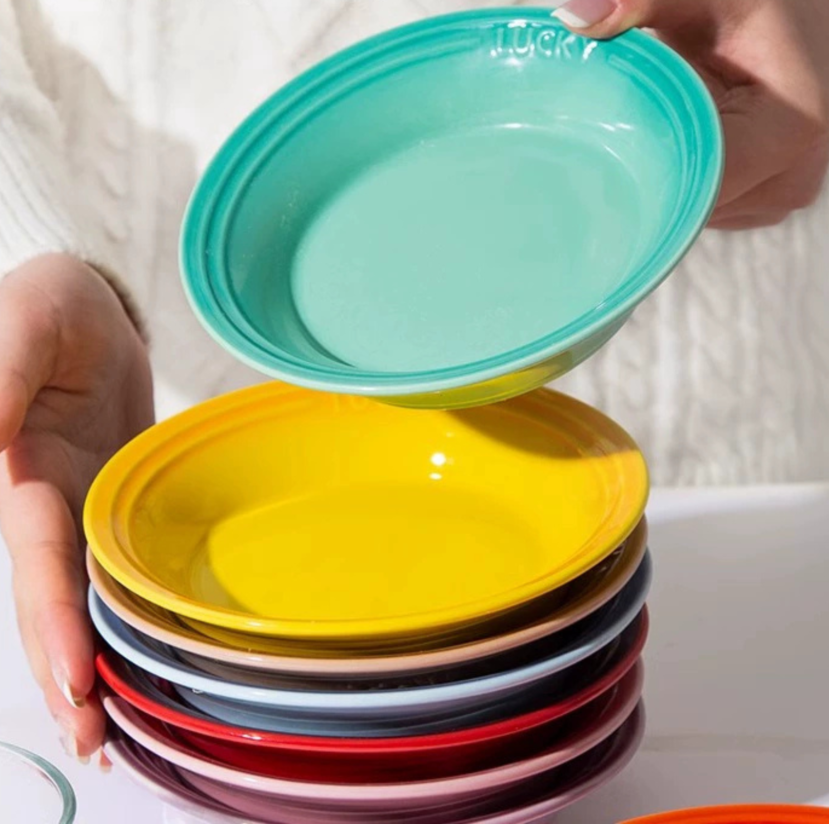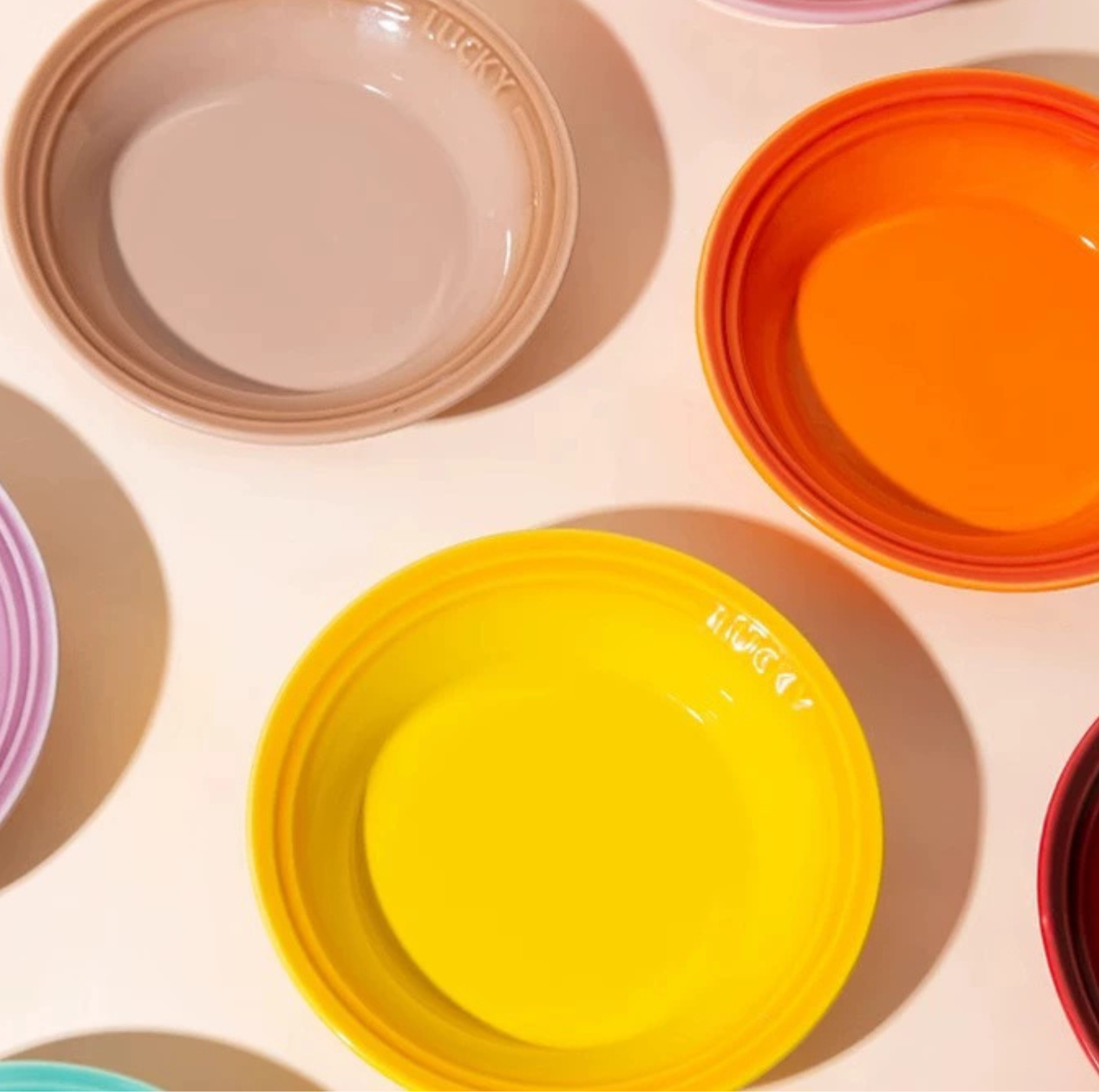 Lucky 6-Inch Flat Ceramic Pet Bowl – Multicolour Glazed Plate for Cats & Small Dogs