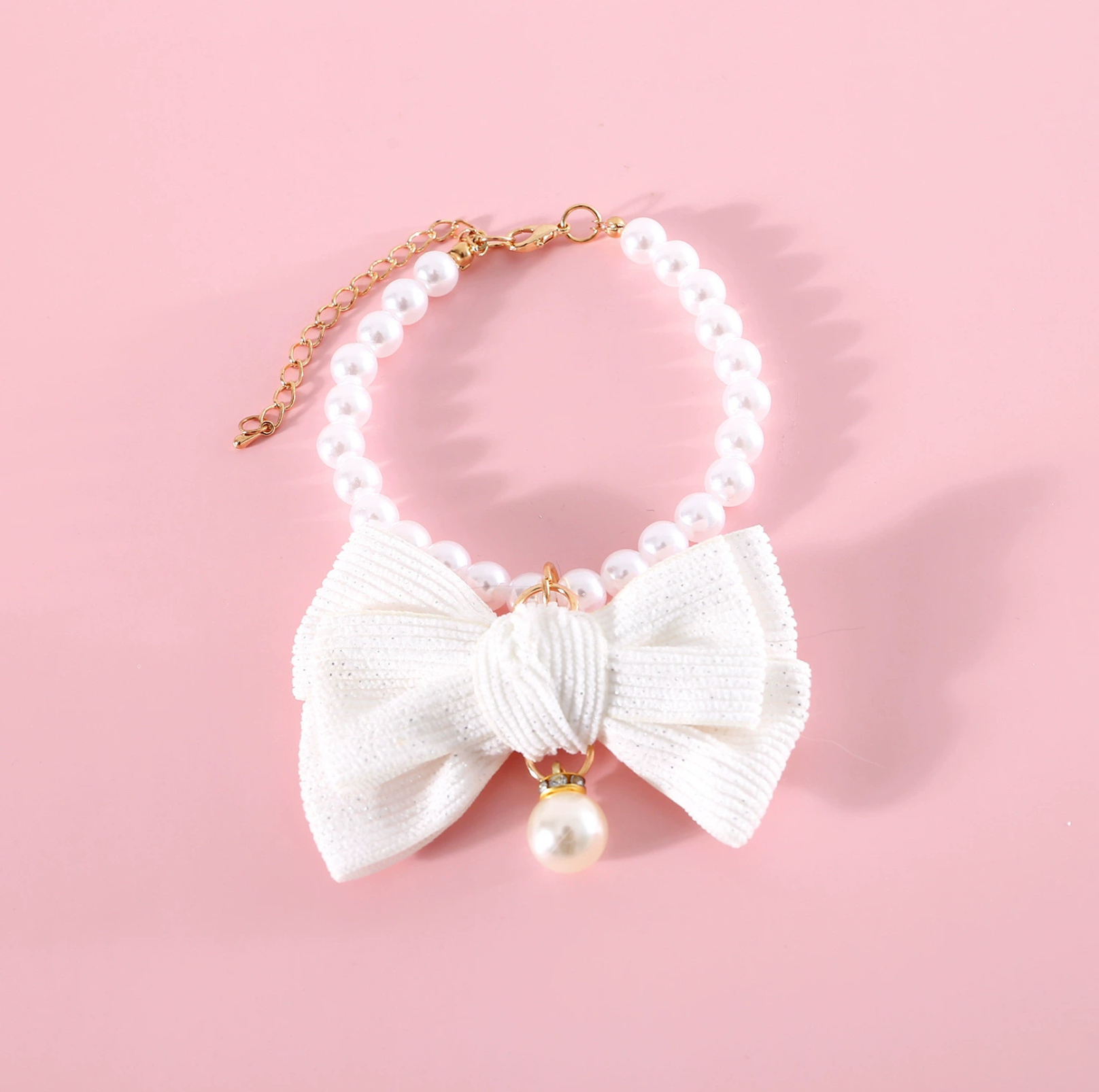 Pearl Bowknot Pet Necklace – For Cats & Small Dogs