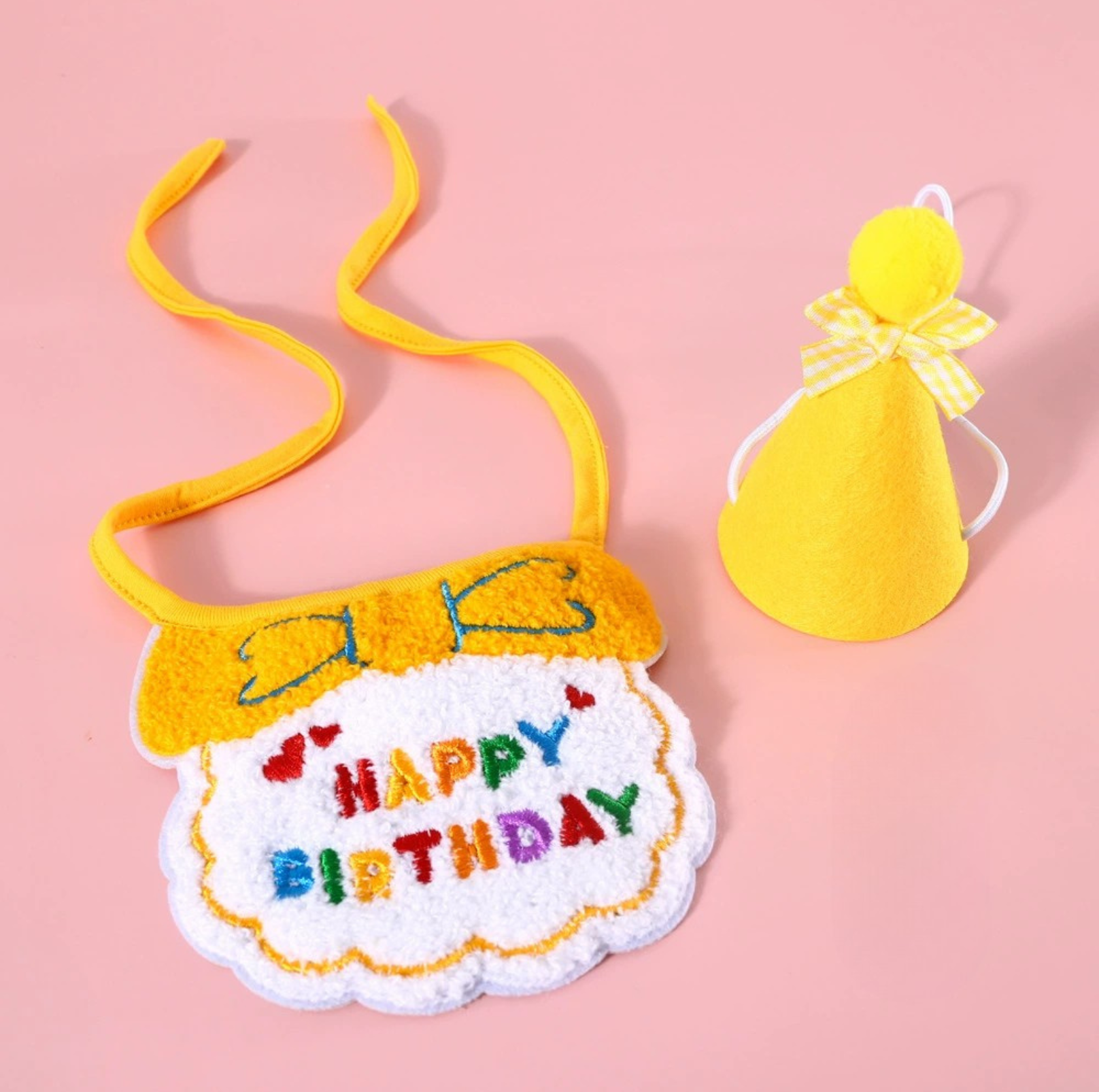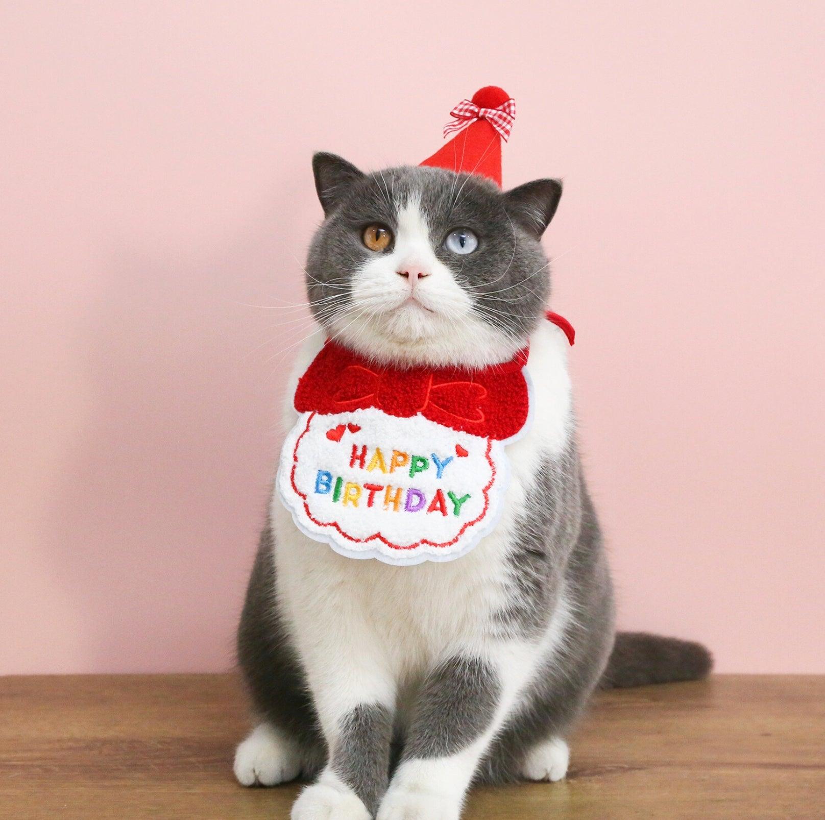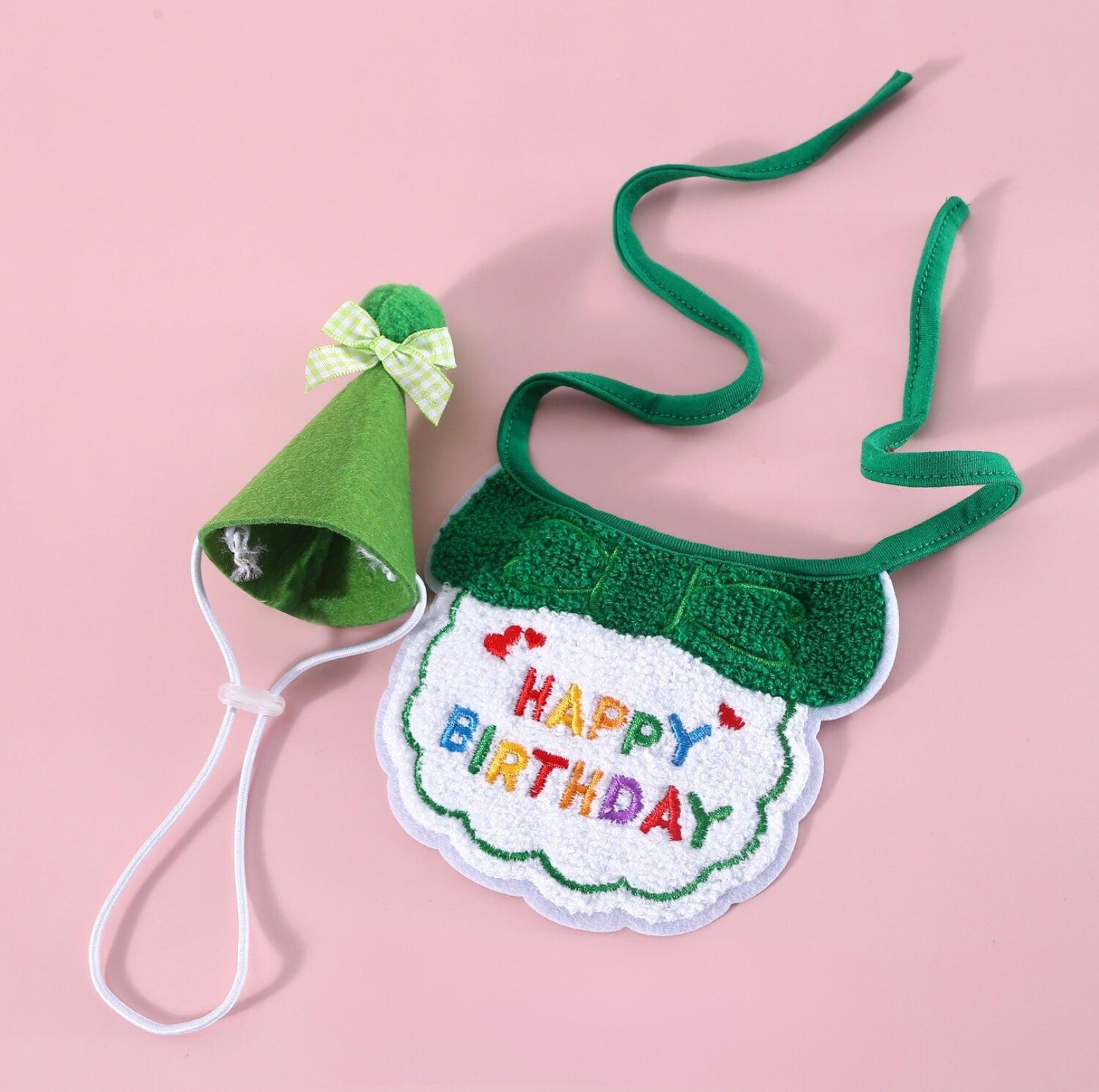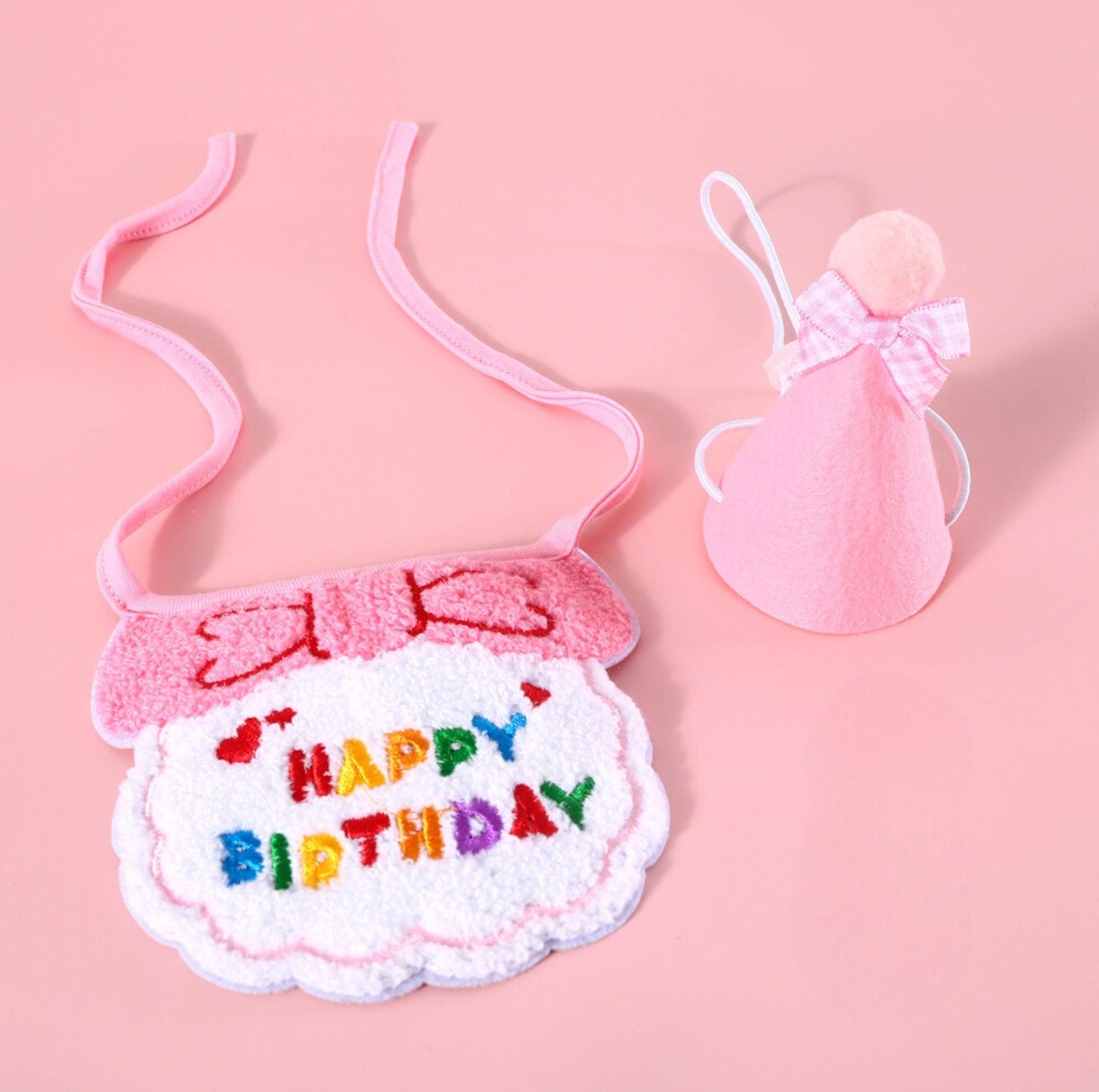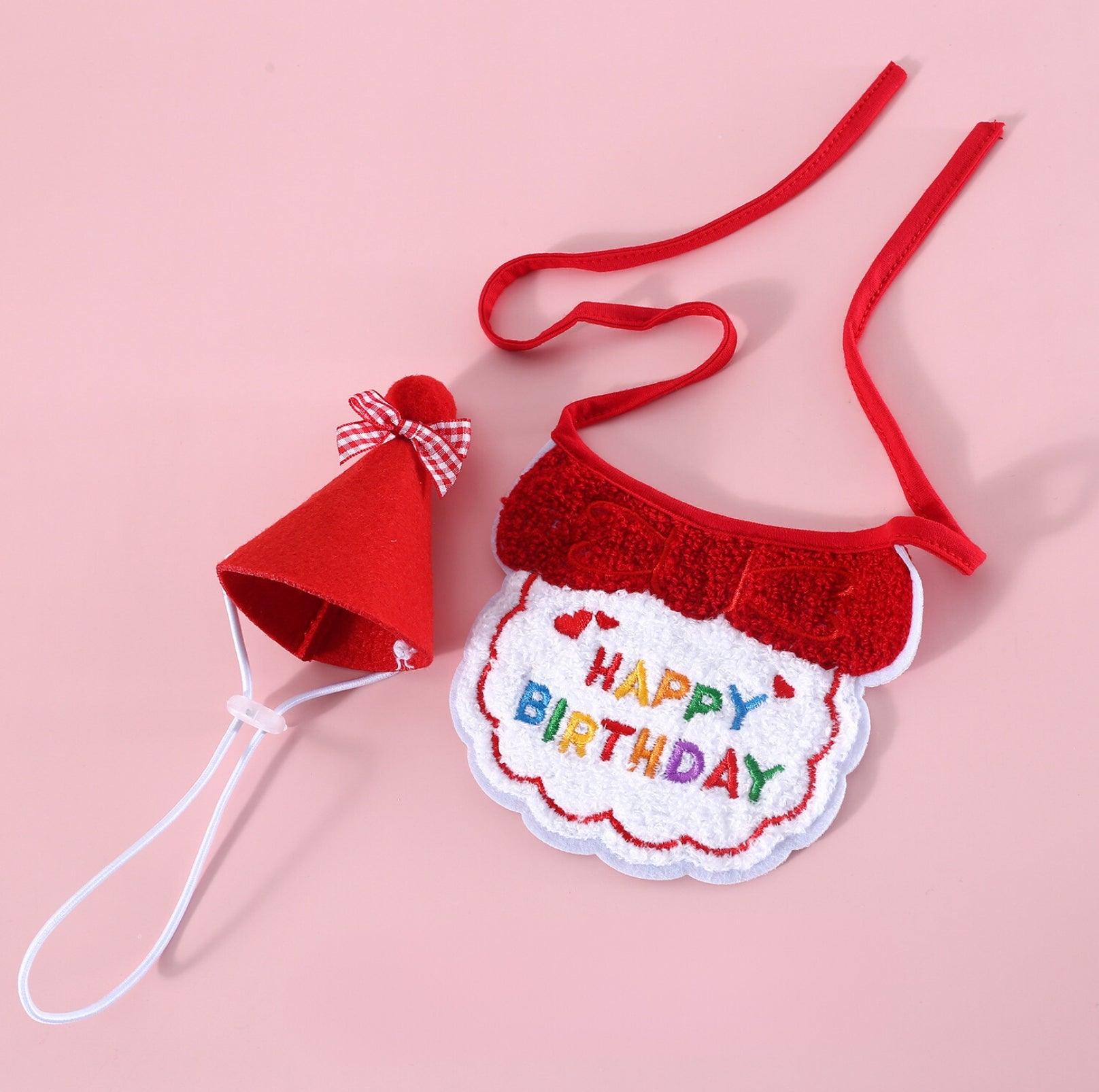 Pet Birthday Ensemble - Embroidered Hat & Bib Accessory Pack