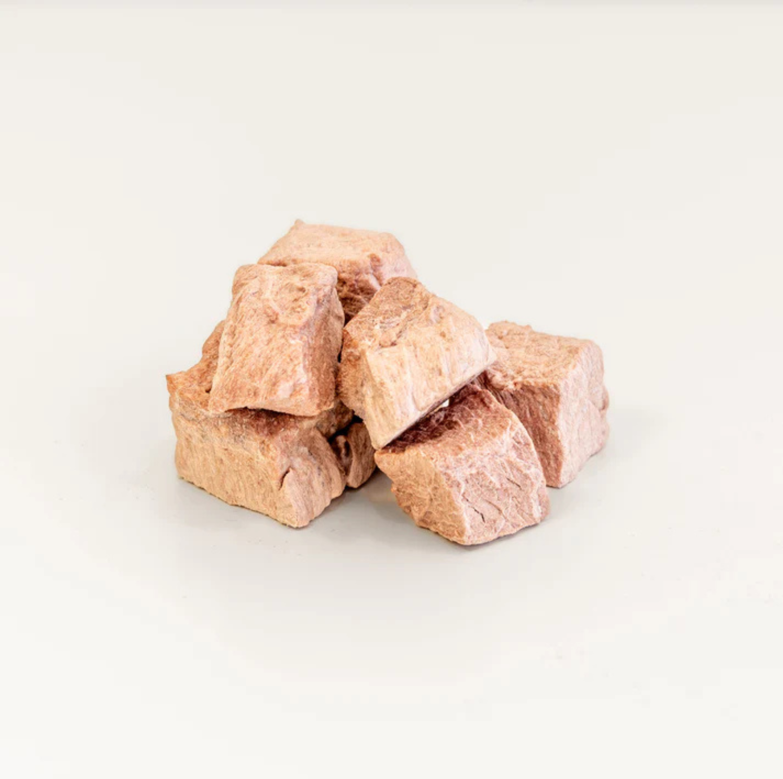 Made from 100% human-grade Australian beef steak, this freeze-dried treat is big on protein, iron, and flavour. We slice it fresh and gently freeze-dry it raw, preserving all the natural benefits without the need for cooking or chemicals.