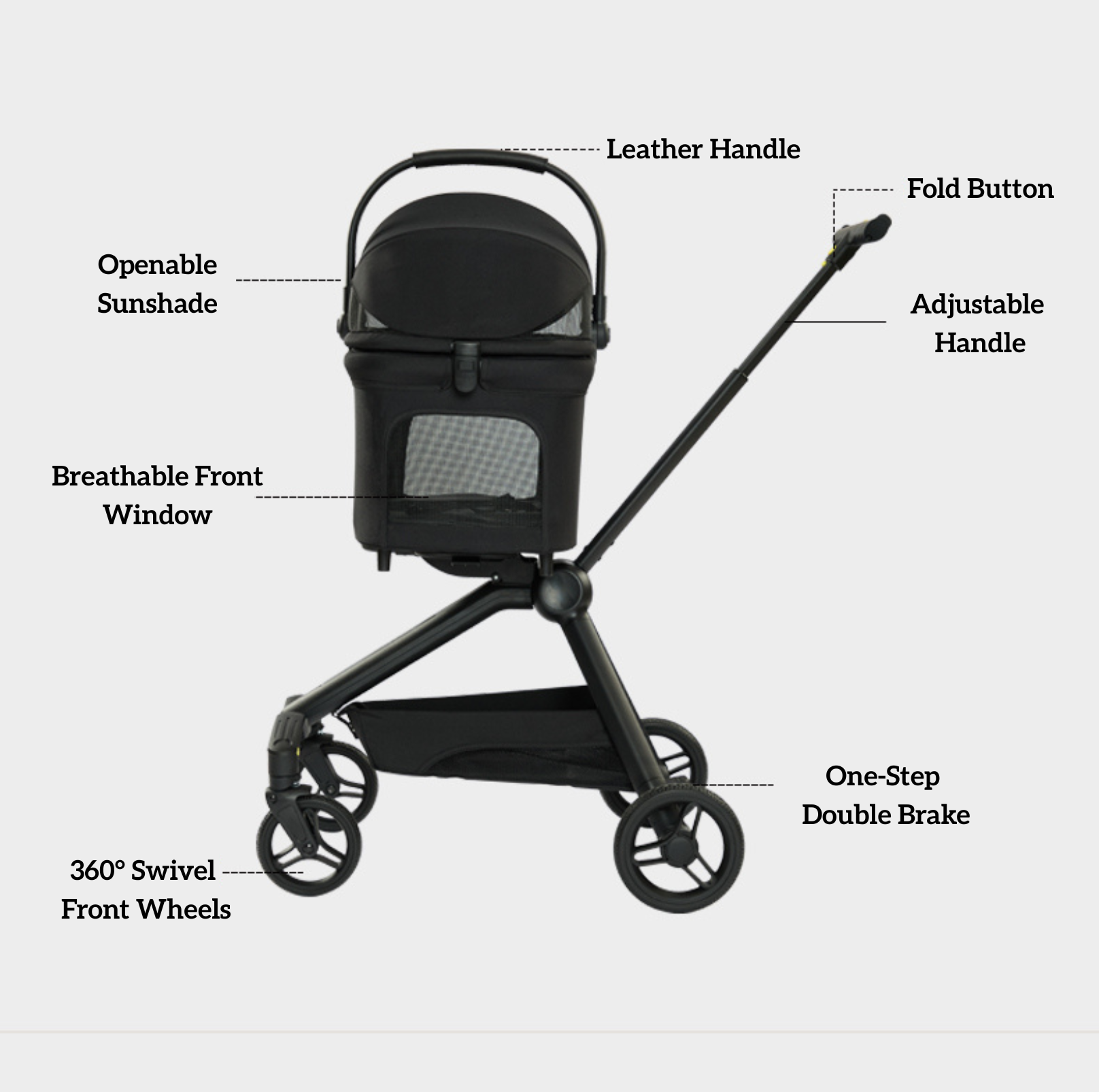 - Detachable carrier: Remove the basket in one move for easy carrying. Both sides of the canopy can open for airflow and interaction, and the leather-style top handle allows comfortable lifting.