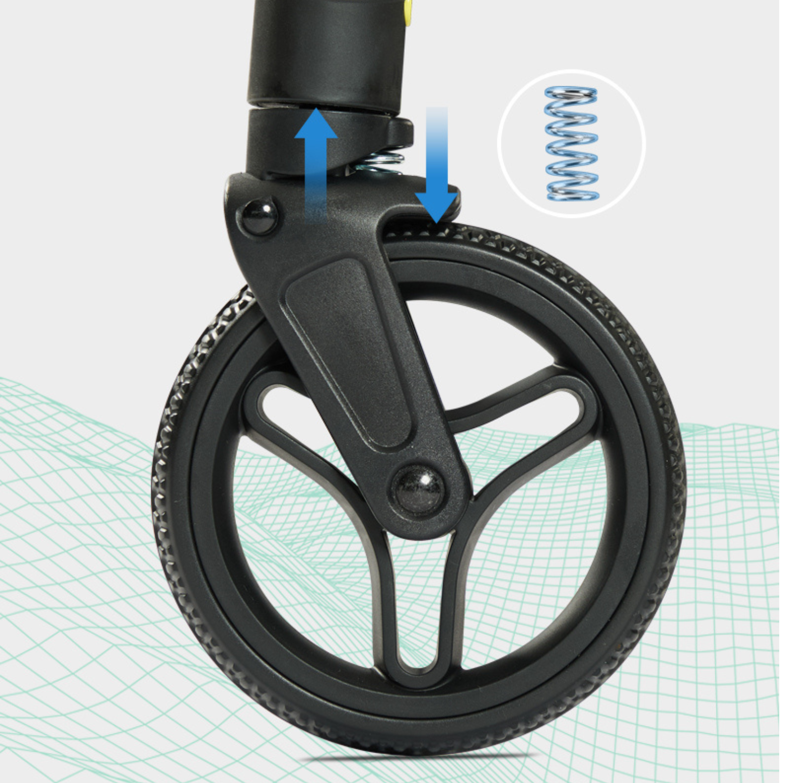 - Smooth outdoor performance: 360° front wheels with spring shock absorption, suitable for tiles, stone paths, grass, speed bumps, pebbles and sand.