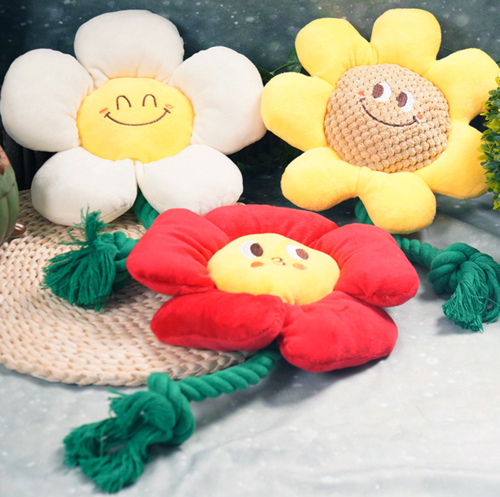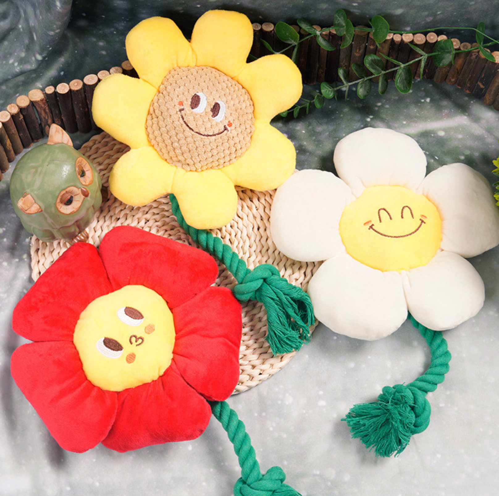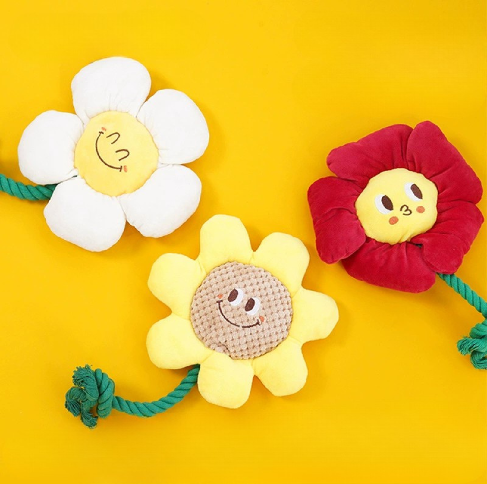 - Playful Design: Cute smiley flower look brings colour and joy to your dog’s playtime.