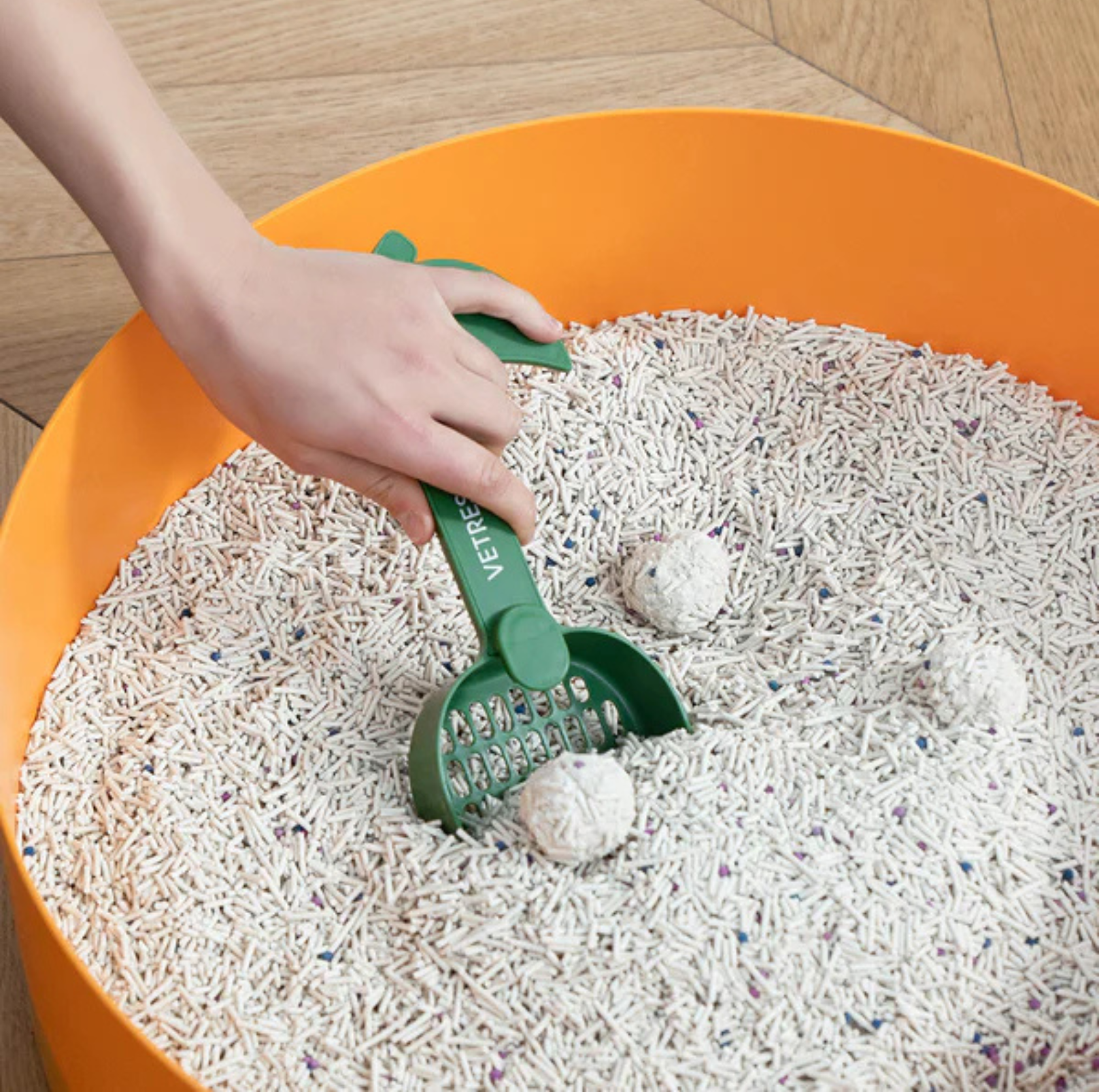 - Matching Litter Scoop: Includes a coordinating scoop that hangs neatly on the rim — keeping cleaning tools within reach while saving space.